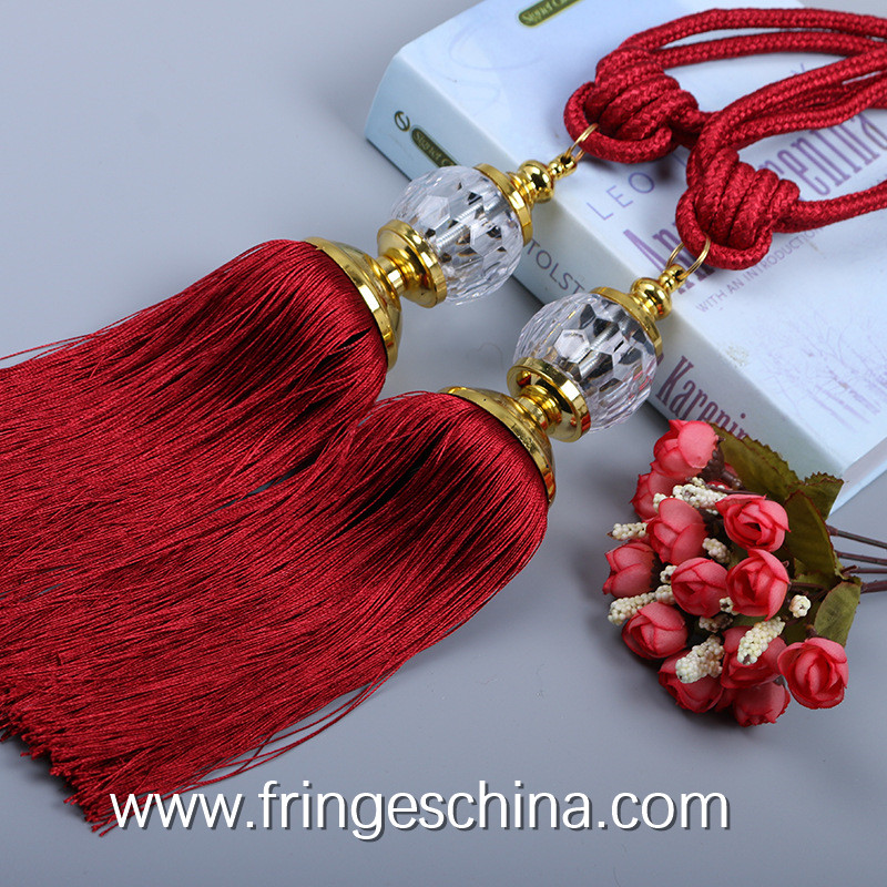 Delicate custom long tassel fringe trimming for curtain attractive tieback hanging ball Images |