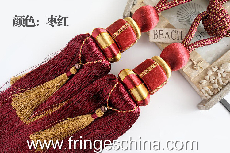 Delicate custom long tassel fringe trimming for curtain attractive tieback hanging ball Images |