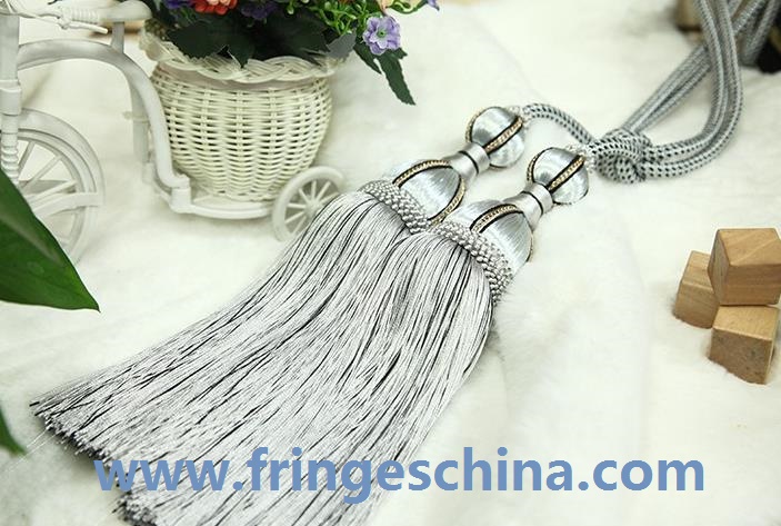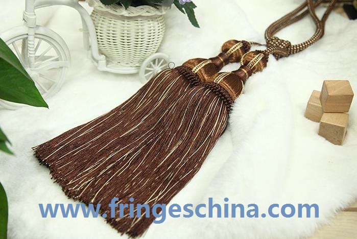 High quality fashion custom long tassel fringe trimming for curtain attractive tieback hanging ball Images |